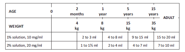 Adult: 200 mg = 20 ml of lidocaine 1% or 10 ml of lidocaine 2%
